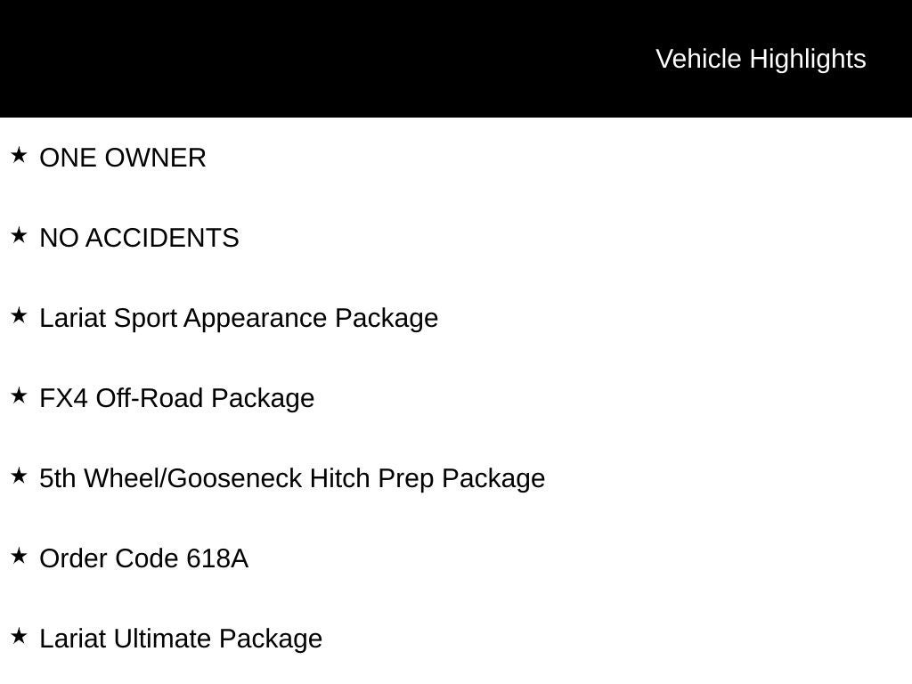 ONE OWNER, NO ACCIDENTS, 110V/400W Outlet, 5th Wheel/Gooseneck Hitch Prep Package, 6 Ebony Black Angular Running Boards, Adaptive Cruise Control & Collision Warning, Air Conditioning, Ambient Lighting - Fixed Color, Auto High-beam Headlights, Black Out Surrounds LED Only Headlamps, Body-Color Front & Rear Bumpers, Delay-off headlights, Dual front impact airbags, Dual front side impact airbags, Easy Entry®/Exit Memory Driver's Seat Feature, Ebony Black Painted Front Grille Bars, Ebony Black Painted Mirror Caps, Electronic Stability Control, Electronic-Locking w/3.73 Axle Ratio, Engine Block Heater, Front dual zone A/C, Front fog lights, Fully automatic headlights, FX4 Off-Road Package, Hill Descent Control, Intelligent Access w/Push-Button Start, Lariat Sport Appearance Package, Lariat Ultimate Package, LED Box Lighting, Low tire pressure warning, Memory Power-Adjustable Pedals, Off-Road Specifically Tuned Shock Absorbers, Order Code 618A, Outside temperature display, Panic alarm, Power Heated/Ventilated Driver Seat w/Memory, Power Heated/Ventilated Passenger Seat, Power Telescoping/Tilt Steering Wheel/Column, Power windows, PowerScope Trailer Tow Mirrors w/Memory, Pro Trailer Backup Assist, Radio: B&O System by Bang & Olufsen, Rear Wheel Well Liners (Pre-Installed), Rear window defroster, Remote Start System, Remote Tailgate Release, Security system, SiriusXM Radio, Steering wheel mounted audio controls, SYNC 3 Communications & Entertainment System, Tachometer, Tailgate Step & Handle, Tough Bed Spray-In Bedliner, Traction control, Twin Panel Power Moonroof, Ultimate Trailer Tow Camera System, Unique FX4 Off-Road Box Decal, Universal Garage Door Opener (UGDO), Upfitter Switches (6), Voice-Activated Touchscreen Navigation System, Wheels: 20 High-Gloss Black Premium Painted Alum. White Metallic 2020 Ford F-350SD Lariat 4WD 10-Speed Automatic 7.3L V8 PFI SOHC 16V Federal 385hp