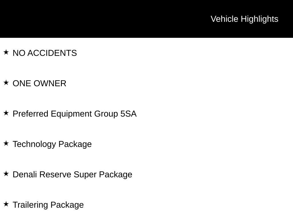 Recent Arrival! NO ACCIDENTS, ONE OWNER, 120-Volt Bed Mounted Power Outlet, 120-Volt Instrument Panel Power Outlet, 170 Amp Alternator, 2 Charge/Data USB Ports Inside Center Console, 2 Type-C Charge-Only Rear USB Ports, 2 USB Ports, Adaptive Cruise Control, Apple CarPlay/Android Auto, Auto-Locking Rear Differential, Auxiliary External Transmission Oil Cooler, Bed View Camera, Brake assist, Chrome Header w/Signature Denali Chrome Grille, Chrome Recovery Hooks, Chrome Wheel To Wheel Assist Steps, Color-Keyed Carpeting Floor Covering, Compass, Deep-Tinted Glass, Denali Reserve Super Package, Dual front impact airbags, Electric Rear-Window Defogger, Electrical Steering Column Lock, Electronic Stability Control, Enhanced Automatic Emergency Braking, Floor-Mounted Center Console, Front fog lights, Front Rainsensing Wipers, GMC Connected Access Capable, GMC MultiPro Power Steps, HD Surround Vision, Heated 2nd Row Outboard Seats, Heated Driver & Front Outboard Passenger Seating, Heavy-Duty Air Filter, Hill Descent Control, Hitch Guidance, Hitch Guidance w/Hitch View, In-Vehicle Trailering App, Integrated Trailer Brake Controller, Keyless Open & Start, LED Cargo Area Lighting, Multicolor 15 Diagonal Head-Up Display, OnStar & GMC Connected Services Capable, Perimeter Lighting, Power Door Locks, Power Front Passenger Windows w/Express Up/Down, Power Front Windows w/Driver Express Up/Down, Power Rake & Telescoping Steering Column, Power Rear Windows w/Express Down, Power Sliding Rear Window w/Rear Defogger, Power Sunroof, Preferred Equipment Group 5SA, Premium audio system: GMC Infotainment System, Premium Bose 7-Speaker Sound System, Push Button Start, Rear Camera Mirror, Rear Cross Traffic Braking, Rear Pedestrian Detection, Rear Wheelhouse Liners, Remote Vehicle Starter System, Security system, SiriusXM w/360L, Spray-On Pickup Bed Liner w/Denali Logo, Steering Wheel Audio Controls, Super Cruise, Super Cruise Wrapped Steering Wheel, Technology Package, Theft Deterrent System (Unauthorized Entry), Trailer Camera Provisions, Trailer Side Blind Zone Alert, Trailering Package, Ultrasonic Front & Rear Park Assist, Universal Home Remote, Ventilated Driver & Front Passenger Seats, Wheel Locks (Set of 4) (LPO), Wheels: 22 x 9 Painted Aluminum, Wi-Fi Hotspot Capable, Wireless Charging, Wireless Phone Projection. Onyx Black 2023 GMC Sierra 1500 Denali 4WD 10-Speed Automatic EcoTec3 6.2L V8 Odometer is 21904 miles below market average!