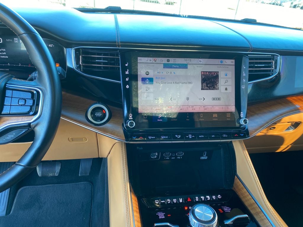 NO ACCIDENTS, Adjustable pedals, Air Conditioning, Auto High-beam Headlights, Auto-leveling suspension, Automatic temperature control, Body Color Roof, Compass, Delay-off headlights, Dual front impact airbags, Dual front side impact airbags, Electronic Stability Control, Front dual zone A/C, Front fog lights, Fully automatic headlights, Heated steering wheel, Knee airbag, Low tire pressure warning, Outside temperature display, Overhead airbag, Power Liftgate, Power moonroof, Quick Order Package 28W, Radio: Uconnect 5 Nav w/12.0 Display, Rain sensing wipers, Rear air conditioning, Rear window defroster, Rear window wiper, Security system, Speed control, Speed-Sensitive Wipers, Steering wheel mounted audio controls, Tachometer, Traction control, Turn signal indicator mirrors, Two Tone Paint Group, Variably intermittent wipers, Ventilated front seats, Wheels: 22 x 9.0 Painted Aluminum. Bright White Clearcoat 2023 Jeep Grand Wagoneer Series III 4WD 8-Speed Automatic 3.0L I6