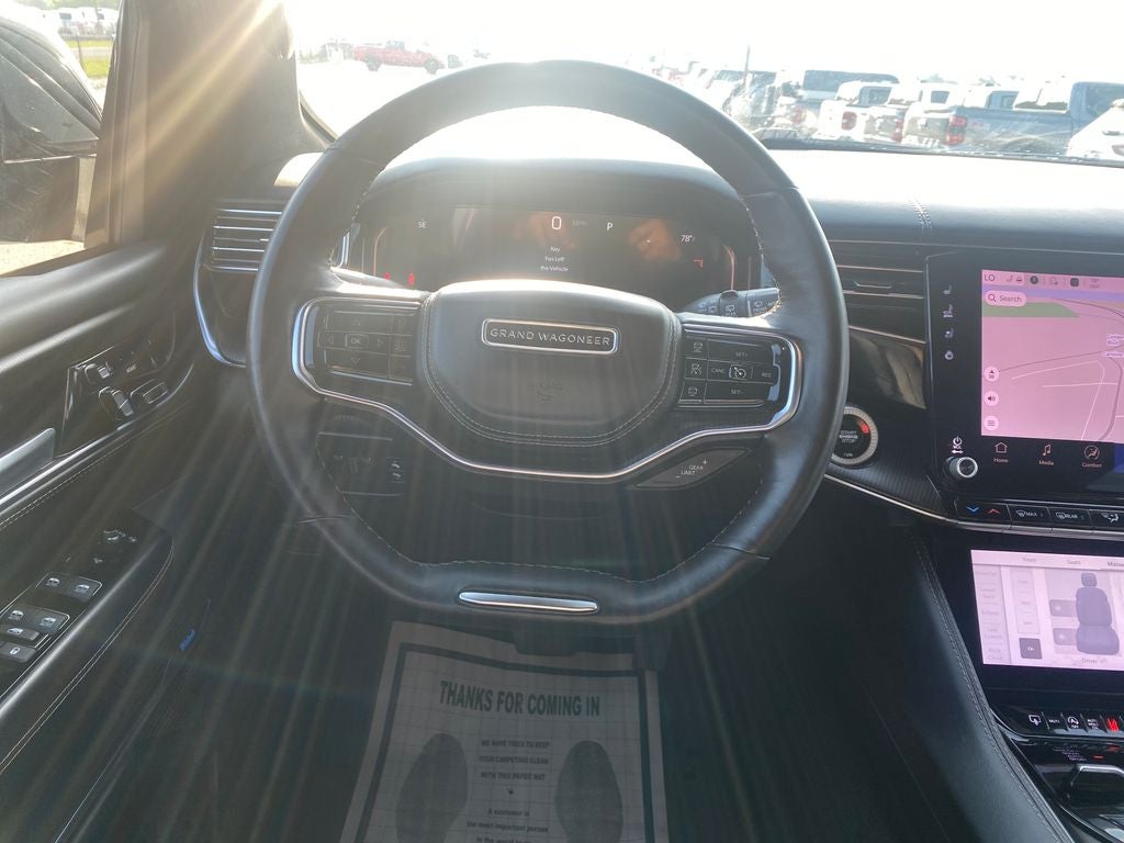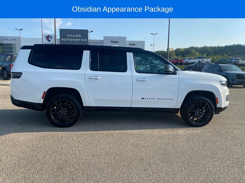 ONE OWNER, NO ACCIDENTS, 19 Speakers, 23 Speaker McIntosh Reference Audio System, Adjustable Roof Rail Crossbars, Air Conditioning, Apple CarPlay/Android Auto, Auto High-beam Headlights, Automatic temperature control, Black Interior Accents, Black Roof, Delay-off headlights, Dual front impact airbags, Dual front side impact airbags, Emergency communication system, Front anti-roll bar, Front Console Cooler, Front dual zone A/C, Front fog lights, Front Passenger Interactive Display, Fully automatic headlights, Gloss Black Upper & Lower DLO Molding, Knee airbag, Low tire pressure warning, Navigation System, Obsidian Appearance Package, Occupant sensing airbag, Outside temperature display, Overhead airbag, Panic alarm, Piano Black Exterior Accents, Power adjustable front head restraints, Power Liftgate, Power moonroof, Quick Order Package 28T Obsidian, Radio: Uconnect 5 Nav w/12.0 Display, Rain sensing wipers, Rear air conditioning, Rear dual zone A/C, Rear window defroster, Rear window wiper, Rearview Autodim Digital Display Mirror, Speed control, Speed-Sensitive Wipers, Tachometer, Two Tone Paint Group, Variably intermittent wipers, Ventilated Rear Seats, Wheels: 22 x 9.0 Tinted Polished w/Black Insert. Bright White Clearcoat 2024 Jeep Grand Wagoneer L Series II 4WD 8-Speed Automatic 3.0L I6