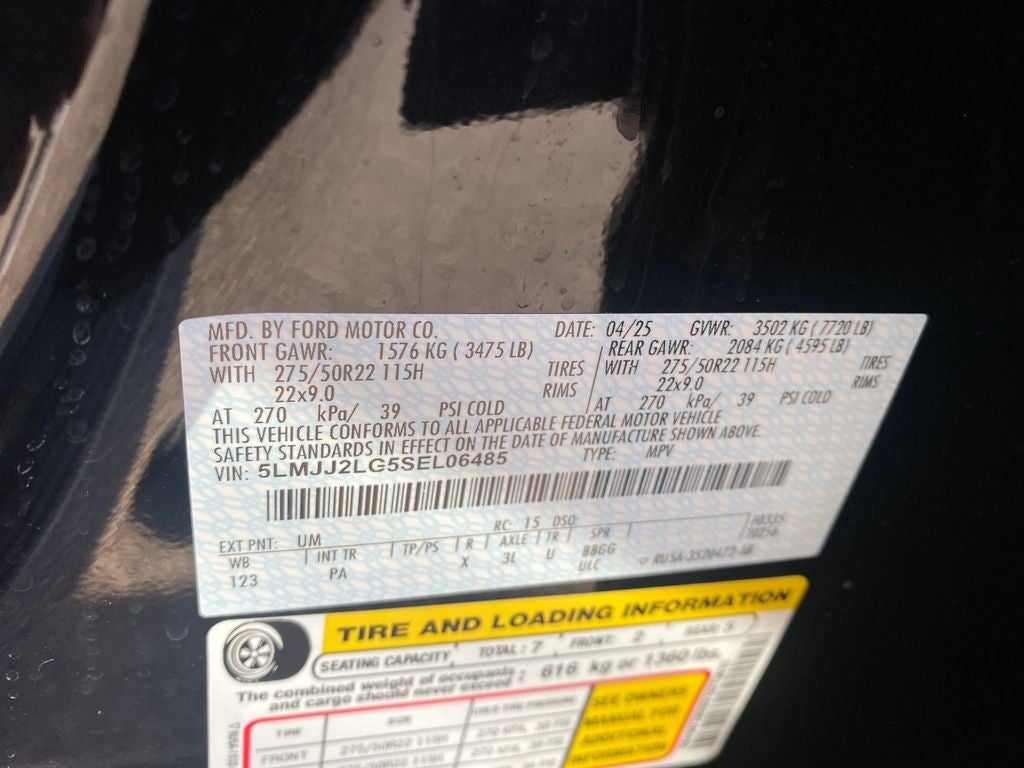 NO ACCIDENTS, ONE OWNER, 28 Speakers, Adjustable pedals, Apple CarPlay/Android Auto, Auto High-beam Headlights, Auto Htd & Ventilated Premium Lthr Captain's Chair, Auto Start-Stop Technology, Auto-leveling suspension, Brake assist, Compass, Delay-off headlights, Dual front impact airbags, Dual front side impact airbags, Electronic Stability Control, Equipment Group 202A Reserve II, Exterior Parking Camera Rear, Four wheel independent suspension, Fully automatic headlights, Garage door transmitter, Heated steering wheel, Lincoln Connect, Lincoln Premium Connectivity, Low tire pressure warning, Navigation system: Connected Navigation (1-year trial), Occupant sensing airbag, Outside temperature display, Overhead airbag, Panic alarm, Power adjustable rear head restraints, Power moonroof: Panoramic Vista Roof, Radio: Revel Ultima 3D AM/FM/HD Audio System, Rain sensing wipers, Rear air conditioning, Rear window defroster, Rear window wiper, Security system, SiriusXM w/360L, Speed control, Speed-sensing steering, Speed-Sensitive Wipers, Steering wheel mounted audio controls, Tachometer, Traction control, Variably intermittent wipers, Wheels: 22 Dark Tarnished Aluminum. Black Metallic 2025 Lincoln Navigator Reserve 4WD 10-Speed Automatic 3.5L V6